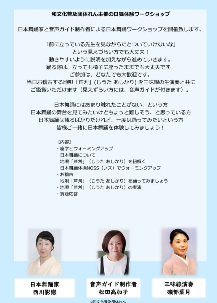前回好評いただきました『音声ガイドつき 日本舞踊ワークショップ』
