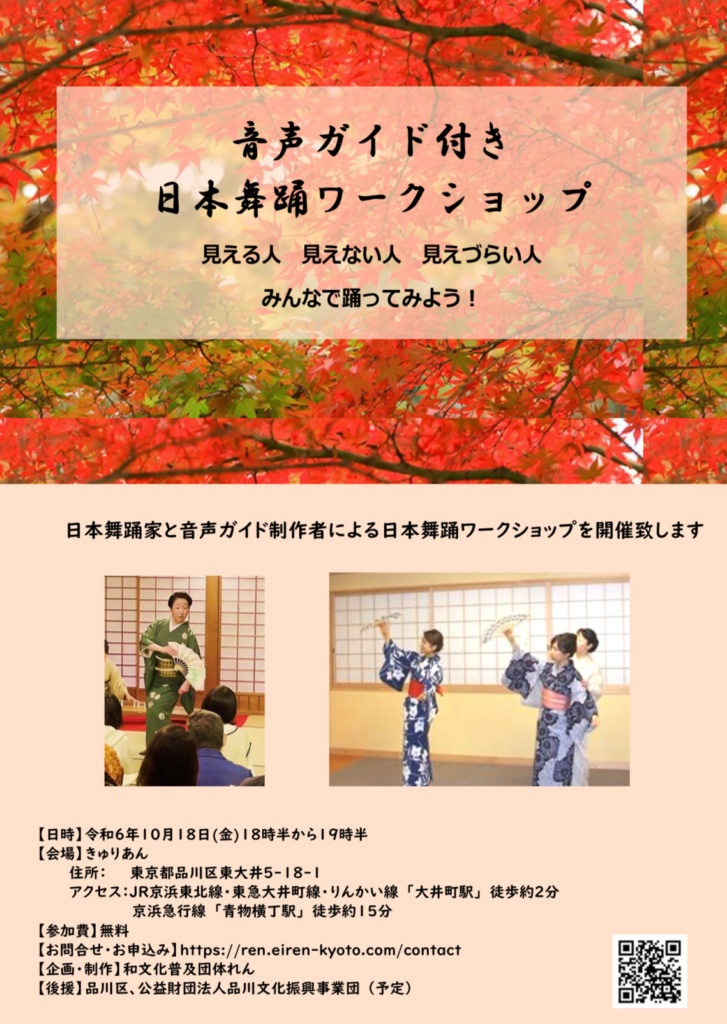 令和6年10月18日、東京品川区きゅりあんにて、音声ガイド付き日本舞踊ワークショップを開催いたしました。